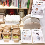 Tea Timeの本はもちろん、「Tea Time」と「HMV&BOOKS HIBIYA COTTAGE」と「紅茶専門店Uf-fu」・「紅茶と英国菓子の店チャッツワース」でコラボレーションした、ここでしか買えないTea Timeオリジナルの紅茶や、お土産にもぴったりのお菓子(ジンジャービスケット、フラップジャックス、ビーナッツバタービスケット)も。とっても美味しいです。